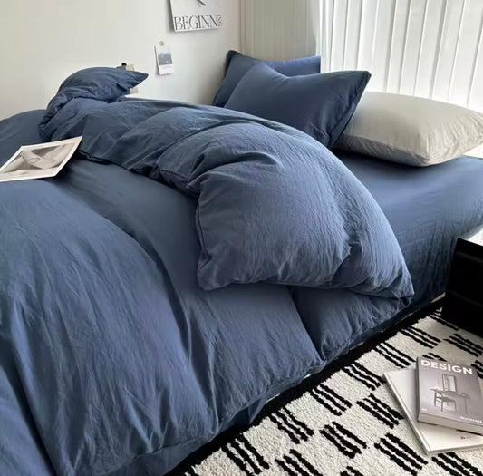 15 separate color Bed Linen Solid Cotton Bedding Set with Sheet Duvet Cover Pillowcases Single Couple Bedsheet King Queen Double Twin Size